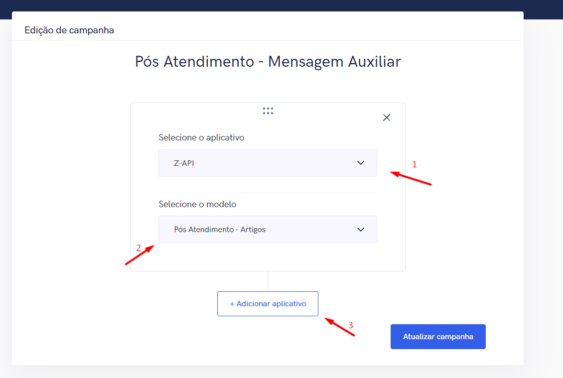 3. Você será direcionado para o menu de edição da campanha escolhida para gatilho. Nesse menu você vai conseguir: